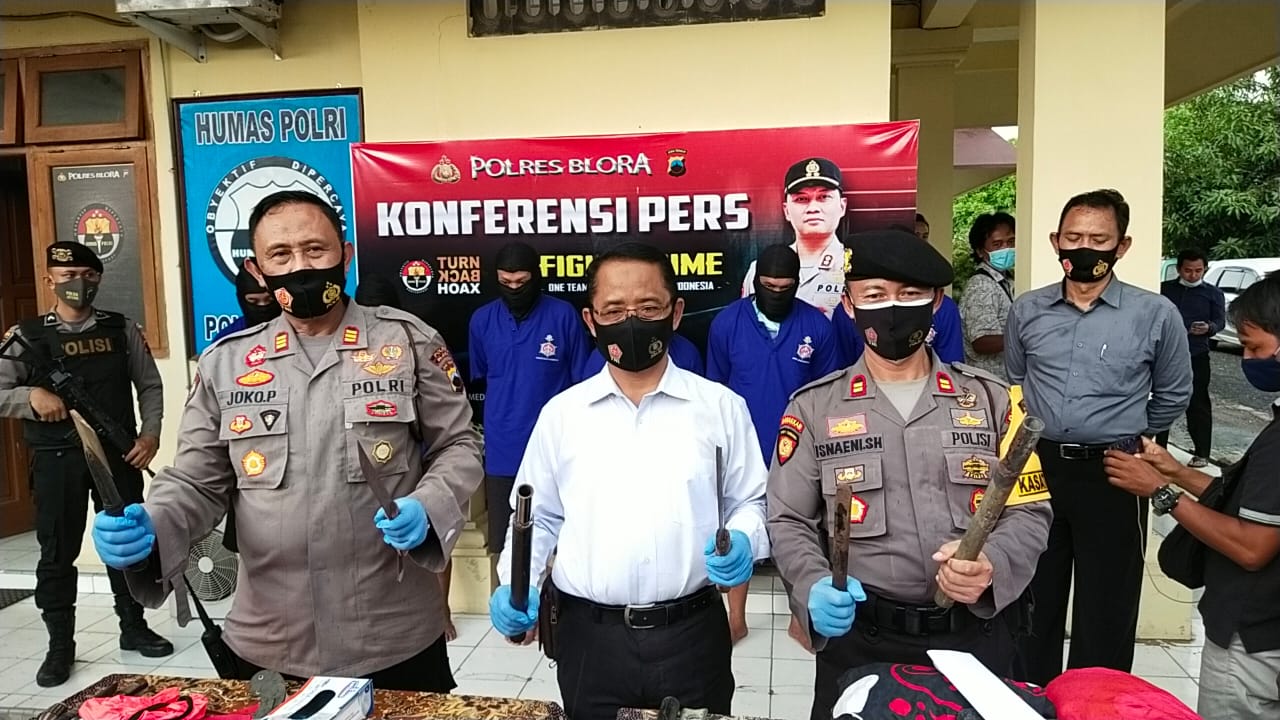 Penangkapan dipimpin oleh Kaur Bin Ops Satreskrim Polres Blora Iptu Edi Santosa,SH dan Kanit Buser Ipda Budi Santosa, berhasil mengamankan 6 tersangka. Diantaranya RA, (23) warga Kecamatan Batangan Kabupaten Pati, M, (30) warga Kecamatan Wonorejo Kabupaten Pasuruan Jatim, WH, (30) warga Kecamatan Wonorejo Kabupaten Pasuruan Jatim, KA, (30) warga Pasuruan Jatim, S, (37) warga Kabupaten Rembang, serta R, (36) salah satu warga Kabupaten Banyumas. Hal tersebut disampaikan oleh Kapolres Blora AKBP Ferry Irawan,SIK,M.Hum, yang diwakili oleh Kasat Reskrim AKP Setiyanto,SH,MH dengan didampingi oleh Kapolsek Blora AKP Joko Priyono,SH dan Kasat Sabhara Iptu Isnaeni,SH,MH saat menggelar konfrensi pers di halaman belakang Polres Blora, Selasa, (17/11/2020).