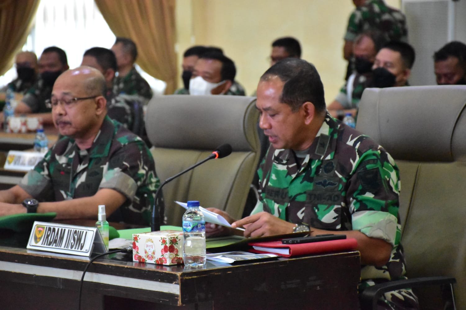 Pangdam II/Swj Mayjen TNI Agus Suhardi dalam sambutan tertulis yang dibacakan Irdam II/Swj Brigjen TNI Heru Setio Paripurnawan M.D.A, menyampaikan selamat datang kepada Tim Pengawas Itjenad di Makodam II/Swj.
