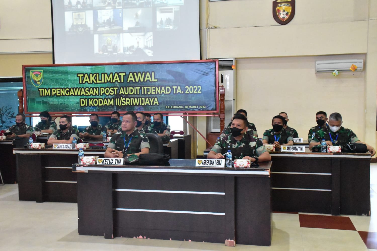 Menandai dimulainya kegiatan Pengawasan Post Audit Itjenad, pada Senin (28/3/2022) digelar Taklimat Awal, di Gedung Sudirman Makodam II/Swj Jalan Jenderal Sudirman KM 2,5 Palembang.