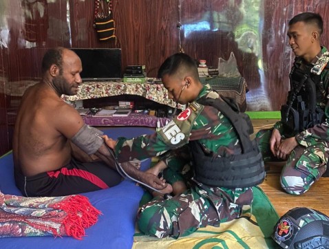 Selain itu, personel Satgas juga memberikan pelayanan kesehatan dengan memberikan obat-obatan berupa vitamin dan pengecekan kesehatan kepada warga.