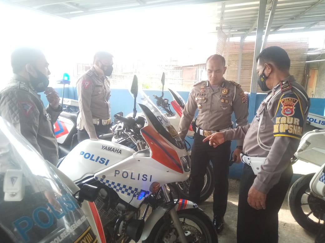 Dipimpin langsung Kasat Lantas Polres Serang AKP Fiat Ari Suhada, S.Ik., giat pengecekan kesiap siagaan personil di lakukan di Pospol Tambak, Serang pada Rabu (09/06/2021).