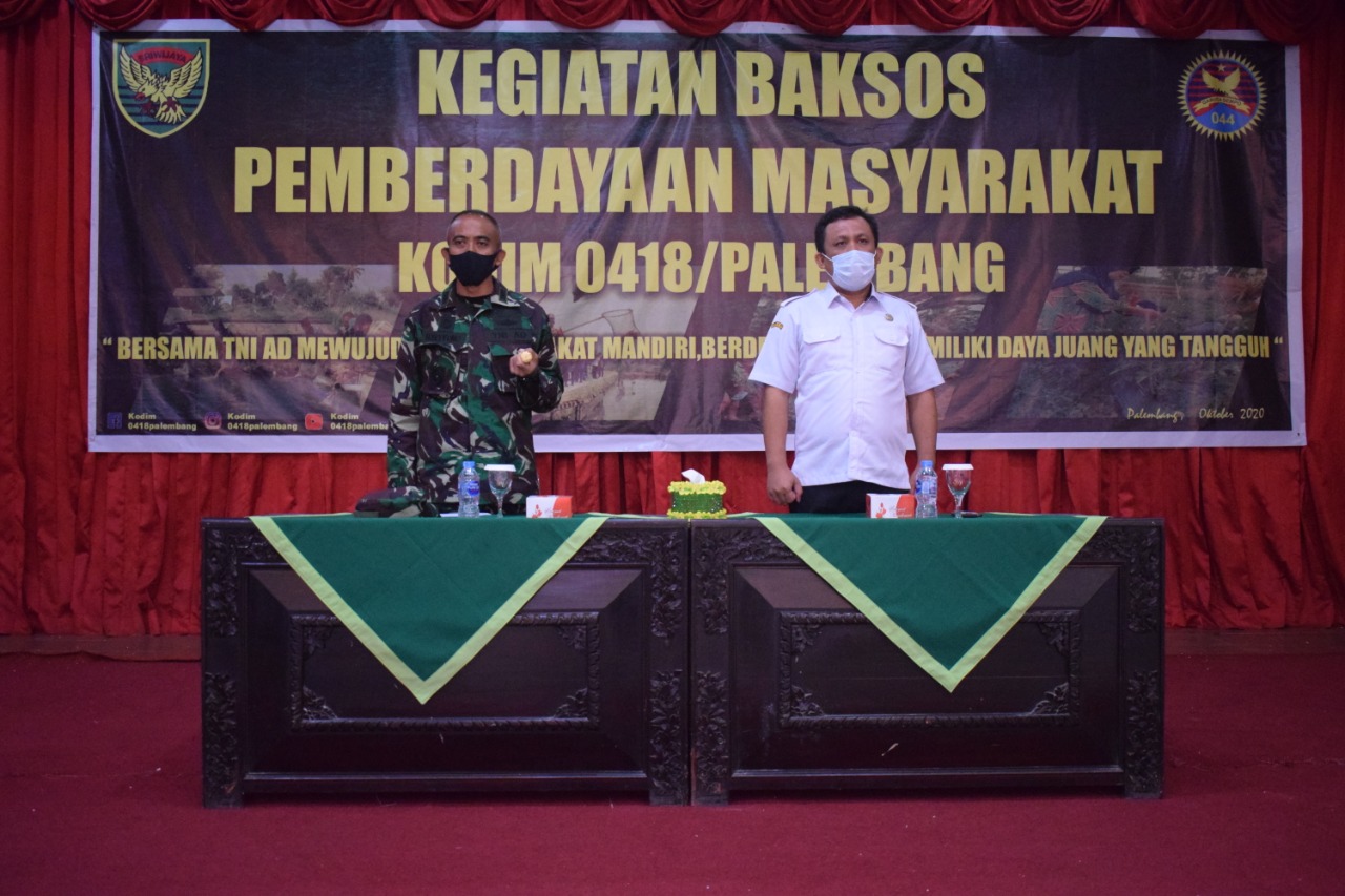 NASIONALXPOS.CO.ID, PALEMBANG – Kodim 0418/Palembang menggelar kegiatan Baksos Pemberdayaan Masyarakat, dengan tema “Bersama TNI AD mewujudkan masyarakat mandiri, berdedikasi dan memiliki daya juang yang tangguh”, di Gedung AEKI Jalan Diponegoro Kelurahan Talang Semut Kecamatan Bukit Kecil Palembang, Rabu (21/10/2020).