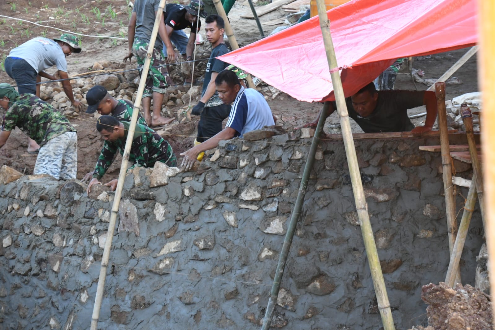 NASIONALXPOS.CO.ID, GORUT – Ada hal menarik pada pelaksanaan Tentara Manunggal Membangun Desa (TMMD) di Desa Molingkapoto, Kecamatan Kwandang. Di mana Komandan Satuan Tugas (Dansatgas) TMMD ke-113 Kodim 1314/Gorut, Letkol Kav Embi Triono turun langsung membantu para anggota satgas lainnya untuk mempercepat proses pembangunan plat duicker jalan di lokasi TMMD ke-113.