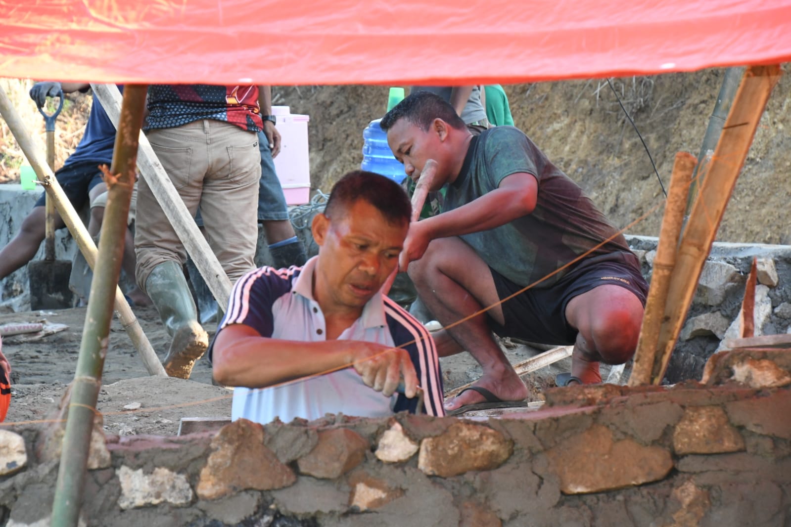 Kapendam juga menjelaskan bahwa Letkol Kav Embi Triono turut membantu mencampur materil dalam menyelesaikan pekerjaan plat duiker jalan, di lokasi TMMD, Desa Molingkapoto, Kecamatan Kwandang.