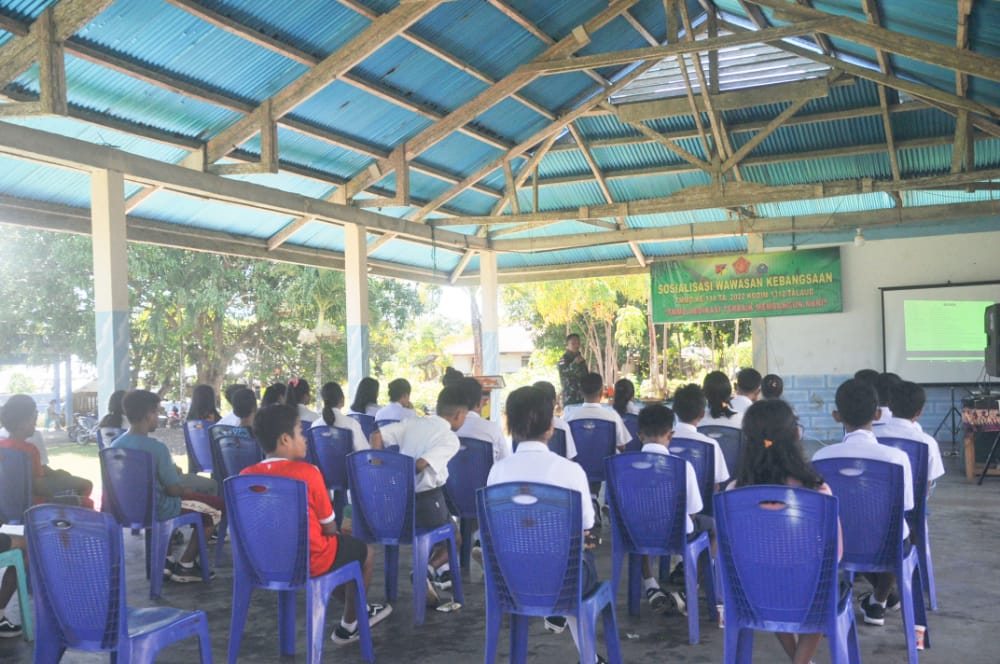 NASIONALXPOS.CO.ID, TALAUD – Kegiatan non fisik Program TNI Manunggal Membangun Desa atau TMMD ke-114 Kodim 1312/Talaud, berupa penyuluhan wawasan kebangsaan bagi para siswa digelar di Pendopo SMPN 2 Talaud Desa Gemeh, Kepulauan Talaud, Provinsi Sulawesi Utara, Selasa (9/8/2022)