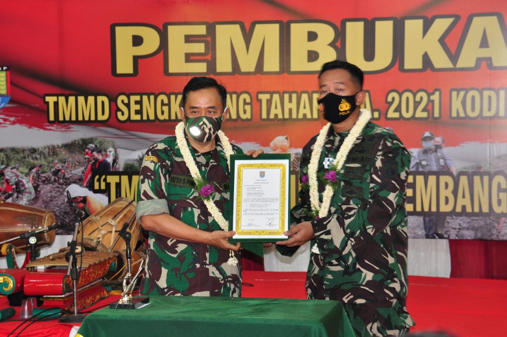 NASIONALXPOS.CO.ID, CILACAP- Kegiatan TMMD Sengkuyung Tahap I Tahun 2020 Desa Karangkemiri Kecamatan Jeruklegi, dimulai. Pembukaan dilakukan Bupati Tatto Suwarto Pamuji bersama Dandim 0703/Cilacap Letkol Inf. Andi Afandi, dengan penandatanganan berita acara dan penyerahan program pelaksanaan TMMD.