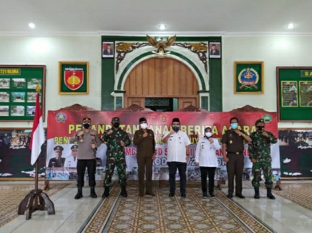 NASIONALXPOS.CO.ID, BLORA – Penutupan, dan penyerahan hasil TNI Manunggal Membangun Desa (TMMD) Sengkuyung Tahap II Kodim 0721/Blora TA. 2021 digelar secara sederhana, dan khidmat dalam nuansa keakraban bersama dengan mematuhi protokol kesehatan di Aula Makodim 0721/Blora, Rabu (14/7/2021).