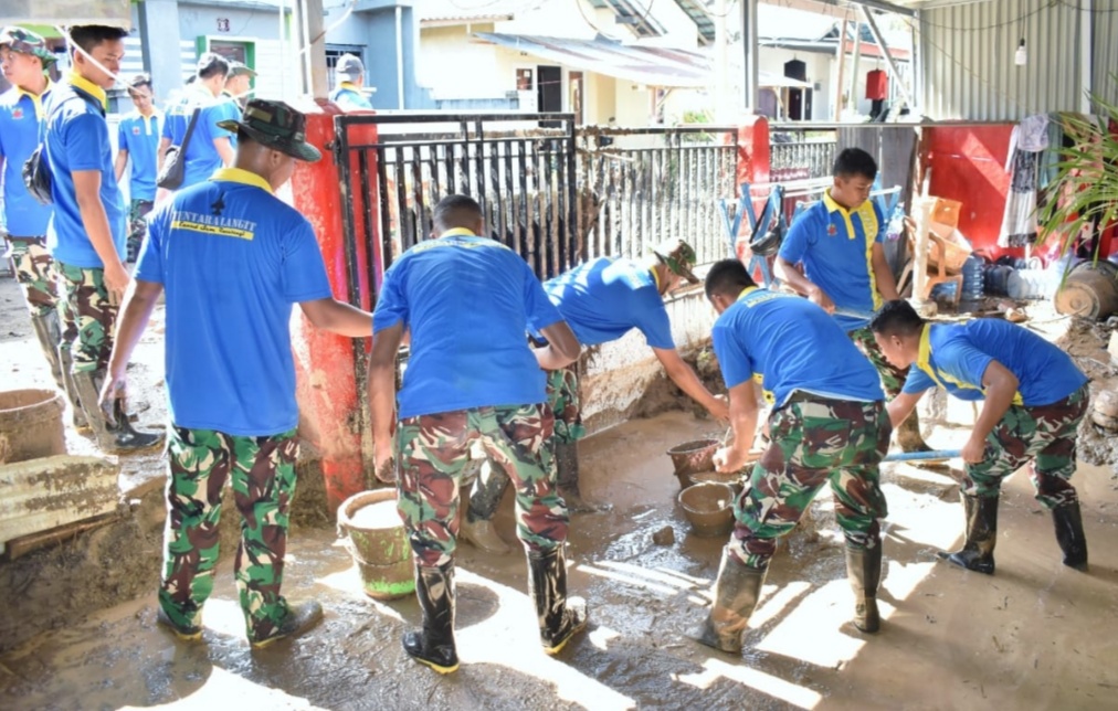 Menurut laporan Babinpotdirga Lanud Sam Ratulangi, kegiatan bersih-bersih ini telah digelar sejak Minggu (29/1) Pukul 15.00 Wita. Membantu menyuplai air bersih untuk penyemprotan di rumah-rumah warga korban bencana Banjir Bandang.