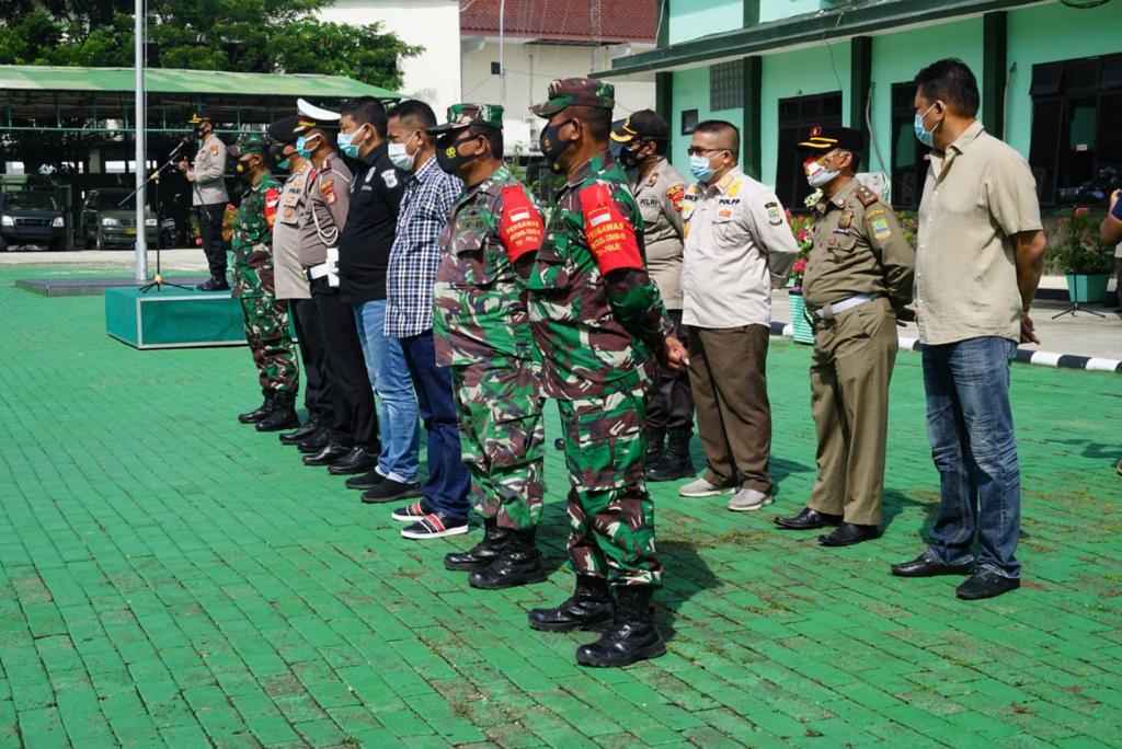 Bertempat Markas komando distrik militier 0509, petugas dari tentara nasional Indonesia dan petugas kepolisian Mapolres metro Bekasi berkumpul untuk melakukan apel gelar pasukan jelang pemilihan kepala desa.