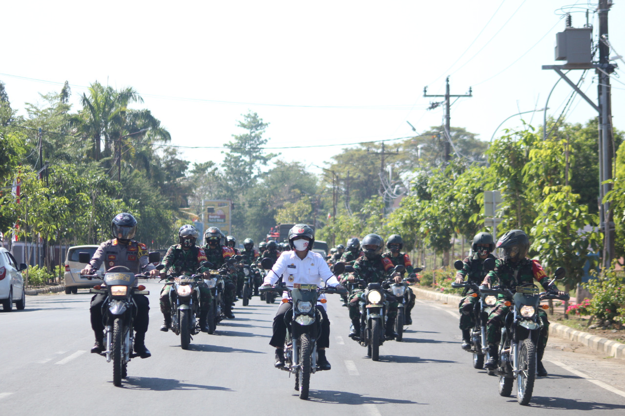 Personil Gabungan TNI Kodim 1409 dan Polres Gowa serta Pemerintah Kabupaten Gowa melaksanakan kegiatan Show Of Force mengelilingi Kota Sungguminasa dalam rangka mengawali kegiatan Operasi Penegakan dan Pendisiplinan Protokol Kesehatan di Wilayah Kabupaten Gowa. Rabu, (19/08/2020).