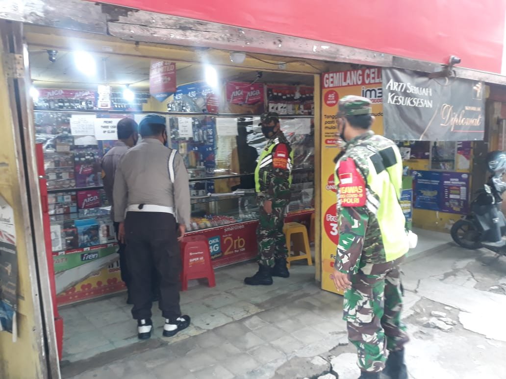 Adapun patroli protokol kesehatan petugas gabungan TNI Polri tersebut menyasar tempat keramaian warga serta pertokoan yang ramai dikunjungi masyarakat.