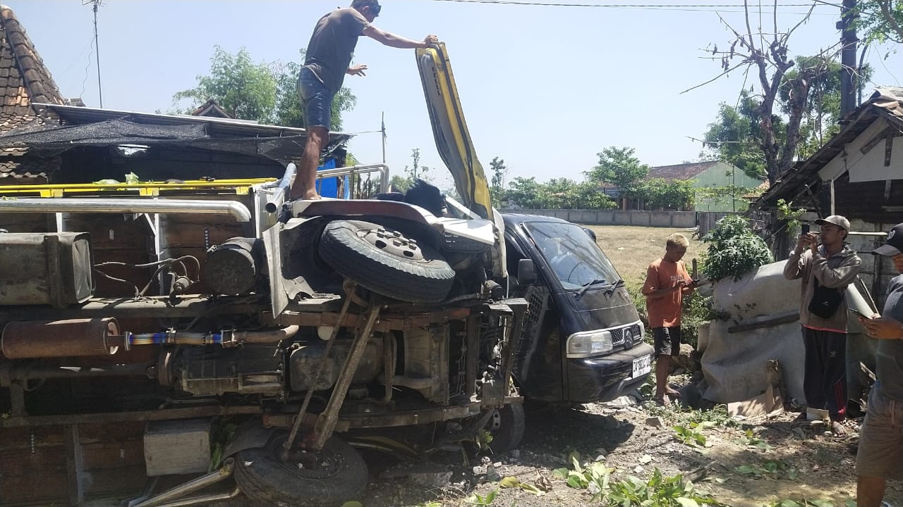 Kondisi yang tidak terkendali membuat truk tersebut terpaksa mengarahkan kendaraannya ke samping kiri untuk menghindari tabrakan dengan kendaraan di depannya. Namun, di depan sebuah rumah, terdapat tiga kendaraan yang terparkir, yaitu satu unit mobil Colt berwarna hitam dengan nomor polisi DA 8014 LG serta dua unit sepeda motor Honda Beat dengan nomor polisi K 4069 UN dan K 5518 BE.