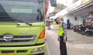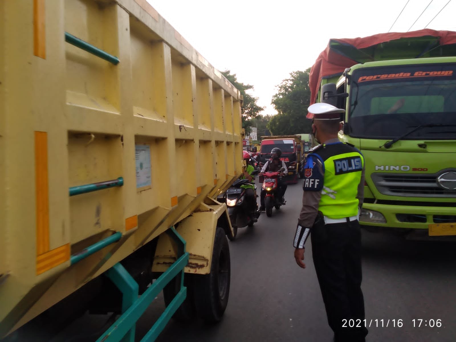 NASIONALXPOS.CO.ID, KABUPATEN SERANG –  Satlantas Polres Serang melaksanakan kegiatan strong point urai kemacetan akibat truk tanah pecah ban, Selasa (16/11/2021).