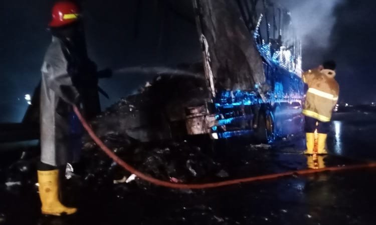 Ufan Haryanto petugas damkar, yang menangani proses pemadaman kebakaran truk tersebut mengatakan, jika penanganan terkendala karna banyaknya tumpukan barang yang terdapat di dalam box truk.