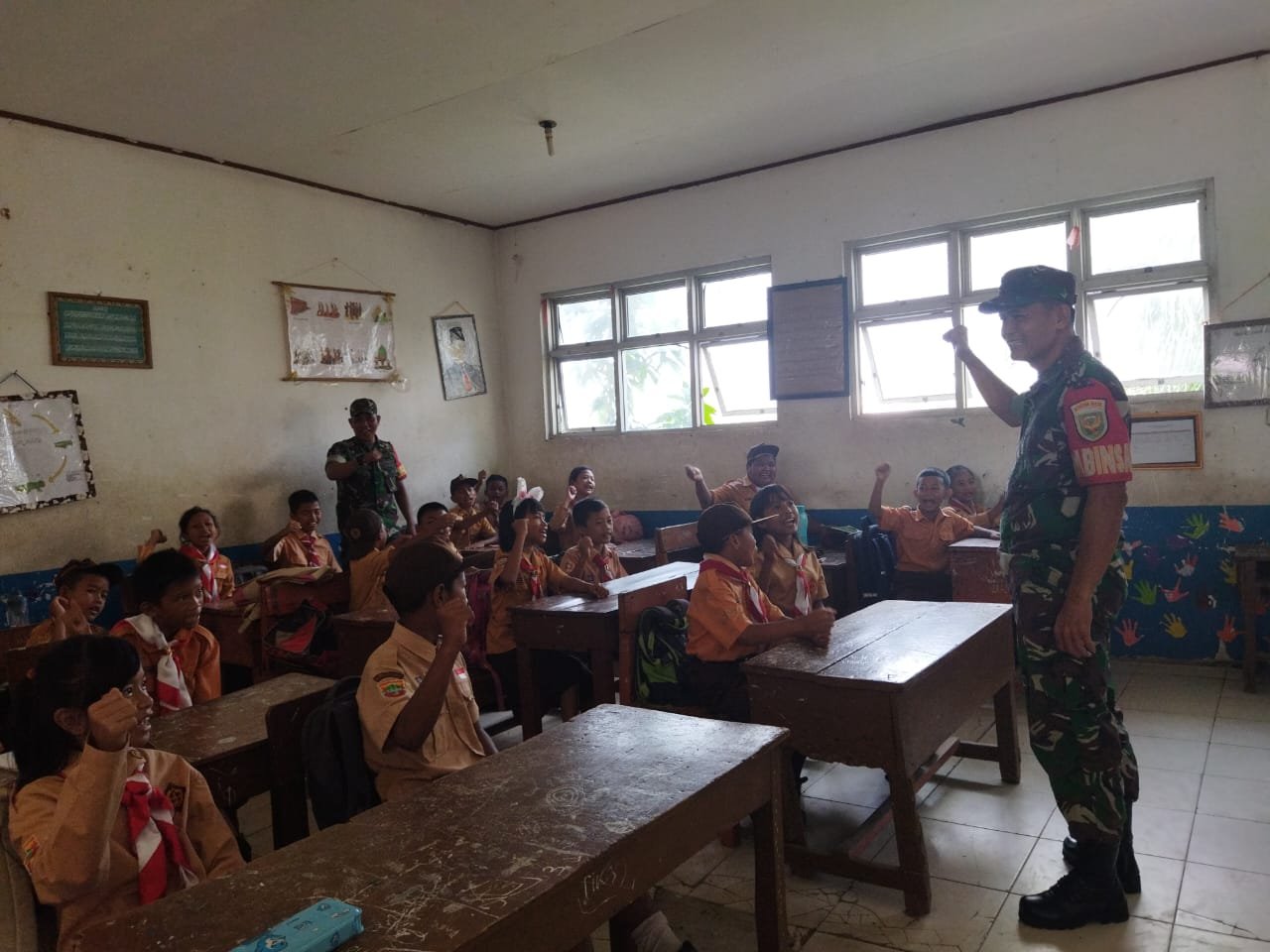 NASIONALXPOS.CO.ID, PALEMBANG – Untuk menumbuhkan jiwa patriotisme terhadap generasi muda penerus bangsa, Babinsa Koramil 418-03/Plaju Sertu Auzar dan Koptu M. Yusuf, memberikan Wawasan Kebangsaan (Wasbang) kepada Siswa dan Siswi SD Negeri 233 Palembang, Sabtu (20/5/2023).