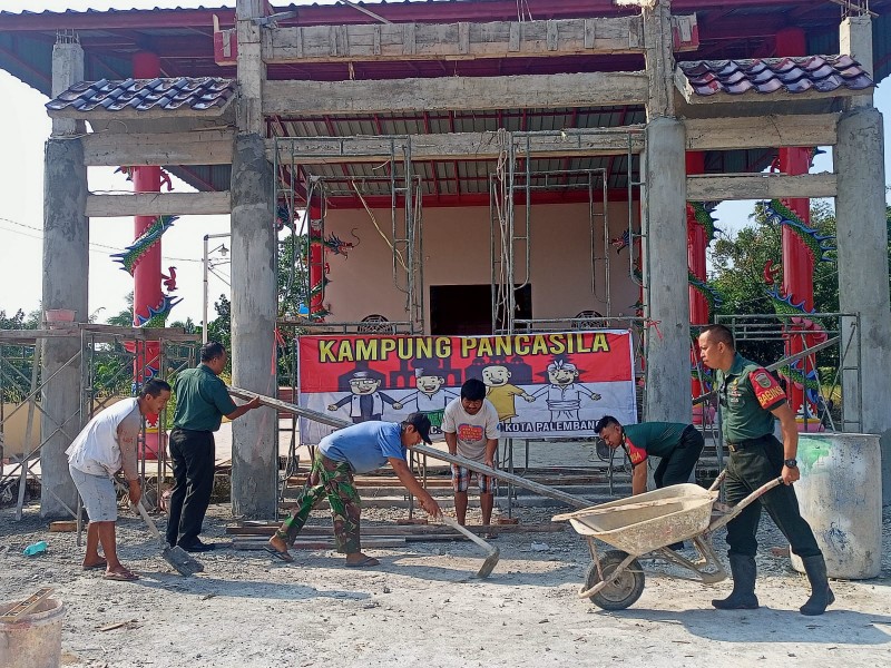 Tumbuhkan Semangat Gotong Royong, Babinsa Sukajaya Bantu Warga Bangun Kelenteng di Kampung Pancasila