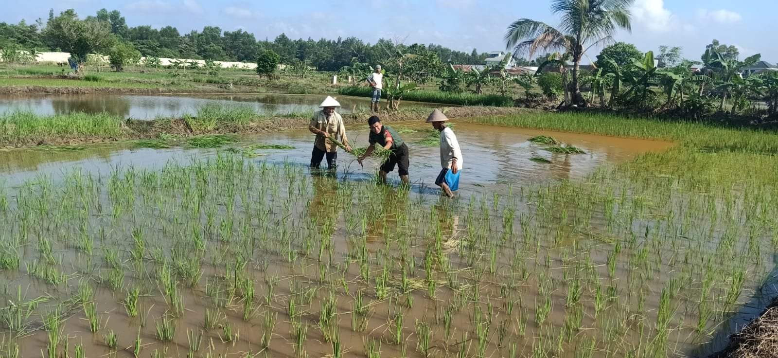 Danramil 418-03/Plaju Lettu Czi Jhunaidi, melalui Sertu Auzar mengatakan, dalam rangka melaksanakan Program Pembinaan Kampung Pancasila sekaligus mendukung ketahan pangan, hari ini kita langsung turun ke sawah guna membantu warga binaan Bapak Suparato dan Bapak Rozi menanam padi.