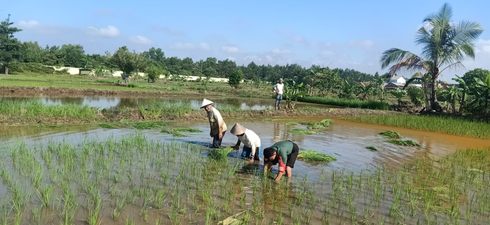 Danramil 418-03/Plaju Lettu Czi Jhunaidi, melalui Sertu Auzar mengatakan, dalam rangka melaksanakan Program Pembinaan Kampung Pancasila sekaligus mendukung ketahan pangan, hari ini kita langsung turun ke sawah guna membantu warga binaan Bapak Suparato dan Bapak Rozi menanam padi.