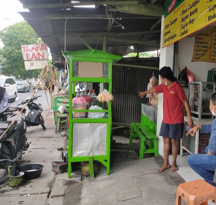 Noviyanto sedang menambal ban di depan gerobak pada Kamis (17/6/2021) sekitar pukul 23.00 WIB.