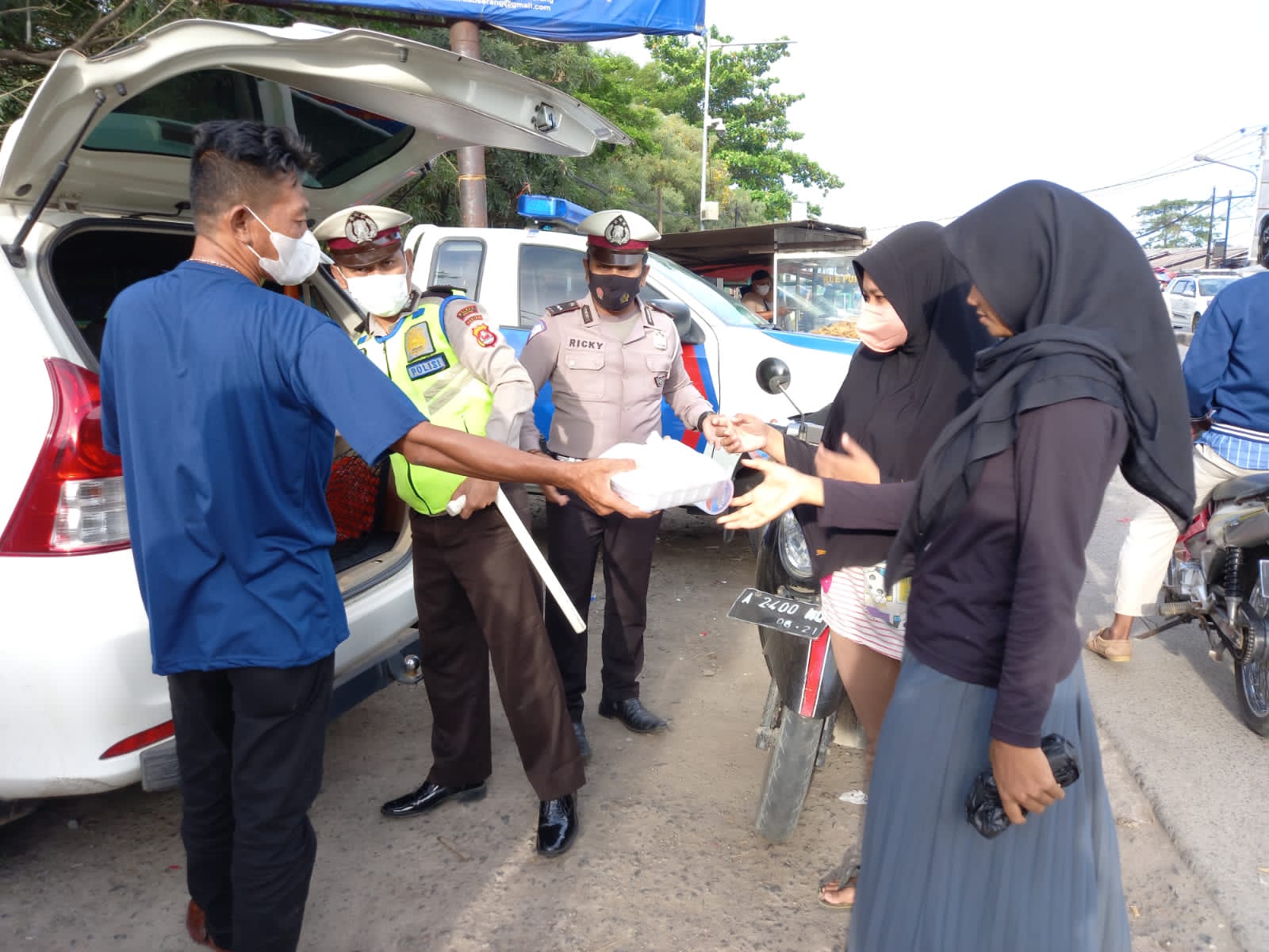 “Supaya di tengah perjalanan nanti mereka bisa berbuka puasa dengan makanan yang diberikan,” kata *Aipda Ricky*. Jum’at (8/4/2022) pukul 17.30 WIB.