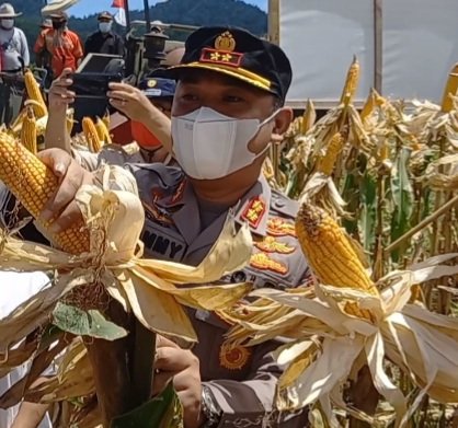 Hal ini dibuktikan Polres Minahasa dengan kerja keras dan membuahkan hasil pada panen jagung untuk kedua kalinya, Rabu (26/01/2022) di Desa Touliang, Kecamatan Kakas.