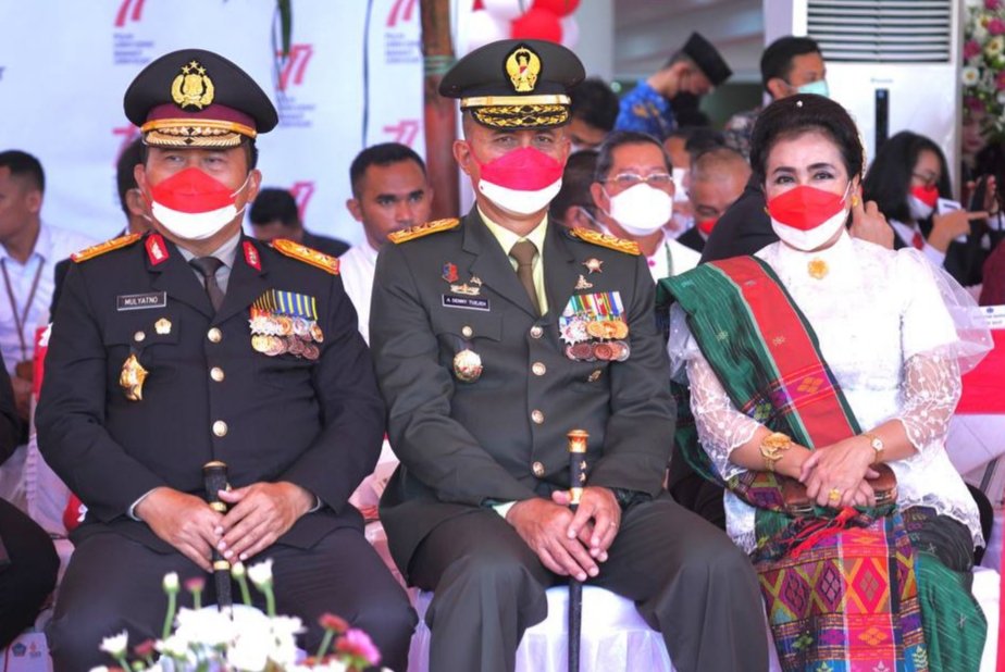 Turut memperingati HUT RI ini, Pangdam XIII/Merdeka Mayjen TNI Denny Tuejeh menghadiri upacara HUT ke-77 Kemerdekaan RI, yang jatuh pada tanggal 17 Agustus 2022, bertempat di Lapangan Kantor Gubernur Sulawesi Utara (Sulut), JL. 17 Agustus, Manado, Rabu (178/2022).