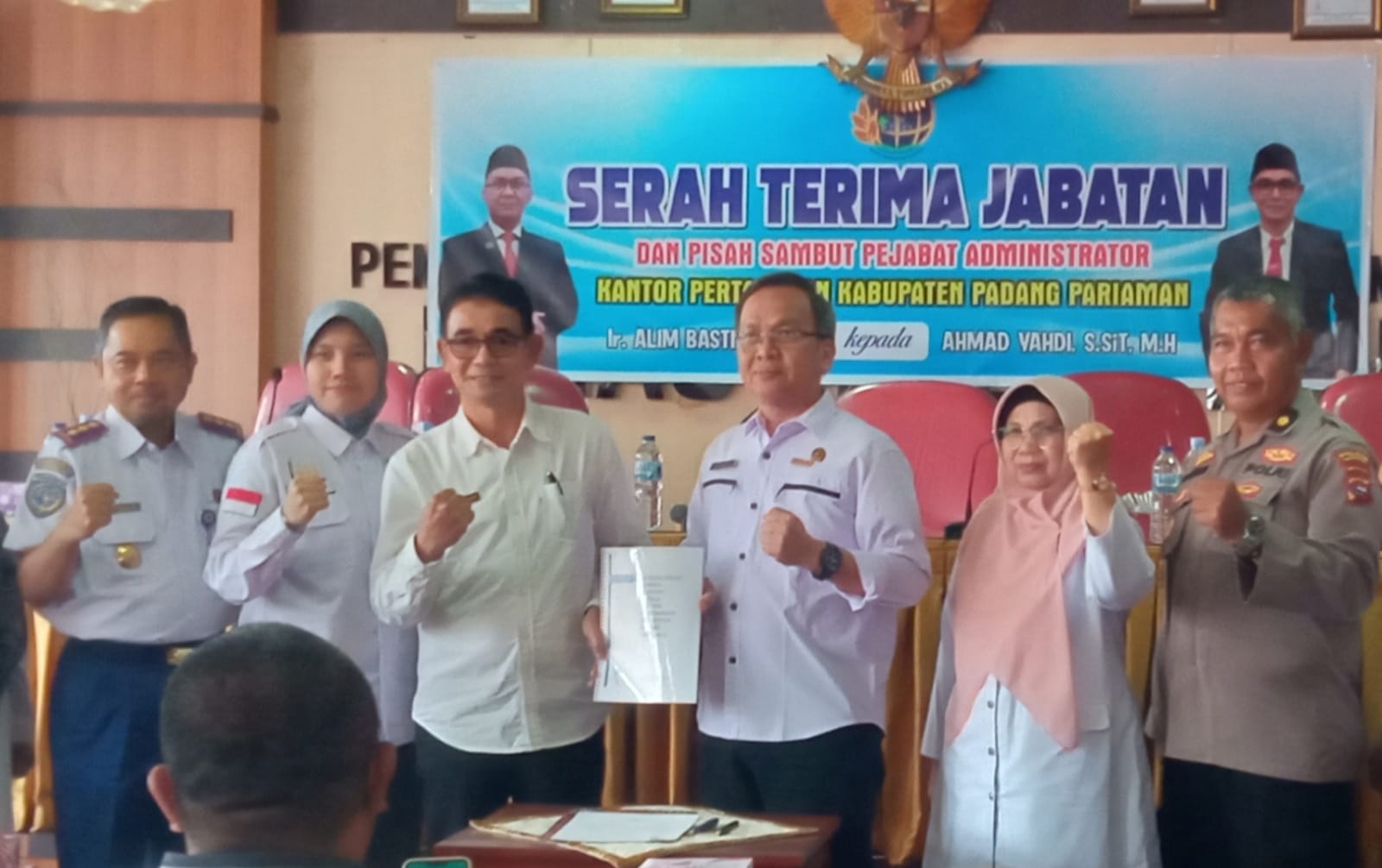 NASIONALXPOS.CO.ID, SUMBAR – Serah terima Jabatan (Sertijab) Kepala Kantor (Kakan) Badan Pertanahan Nasional (BPN)Kabupaten Padang pariaman Provinsi Sumatera Barat dari pejabat lama Ir,Alim Bastian,MM kepada pejabat baru Ahmad yahdi,S.iT.MH kegiatan tersebut berlangsung di aula dinas kesehatan kabupaten Padang pariaman, Rabu (7/6/23).