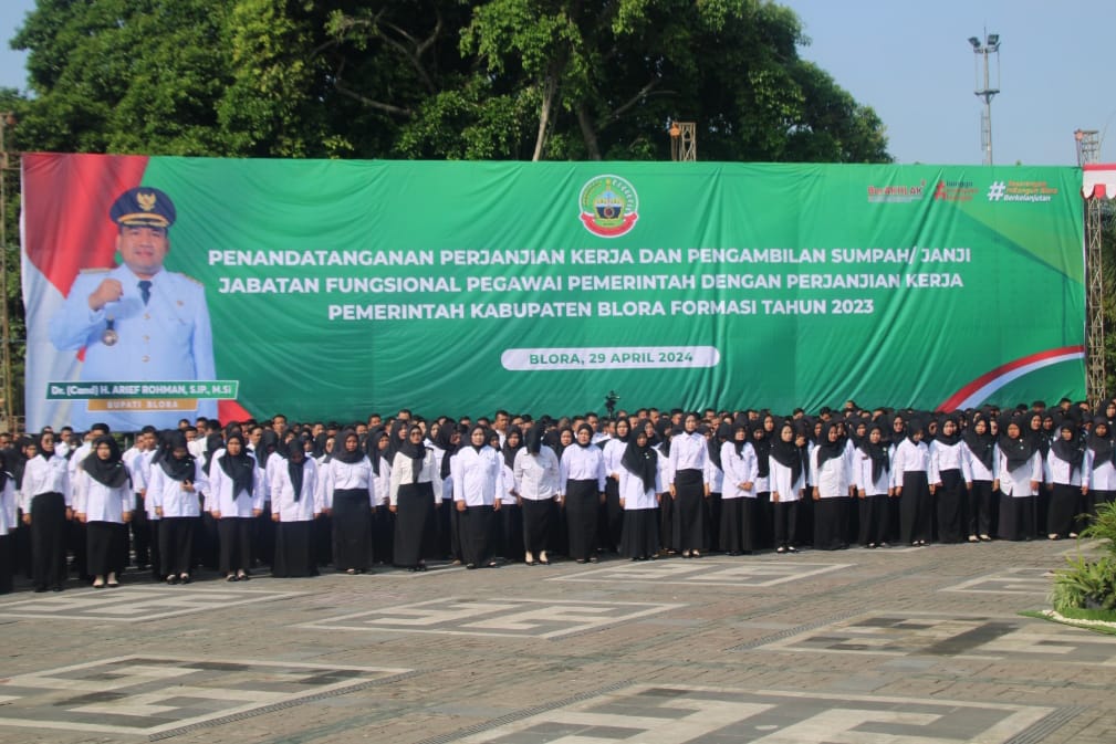 Hal tersebut diungkapkan Arief Rohman saat memberikan sambutan dalam rangka penandatanganan kontrak kerja PPPK di alun-alun Blora, Senin(29/04/2024).
