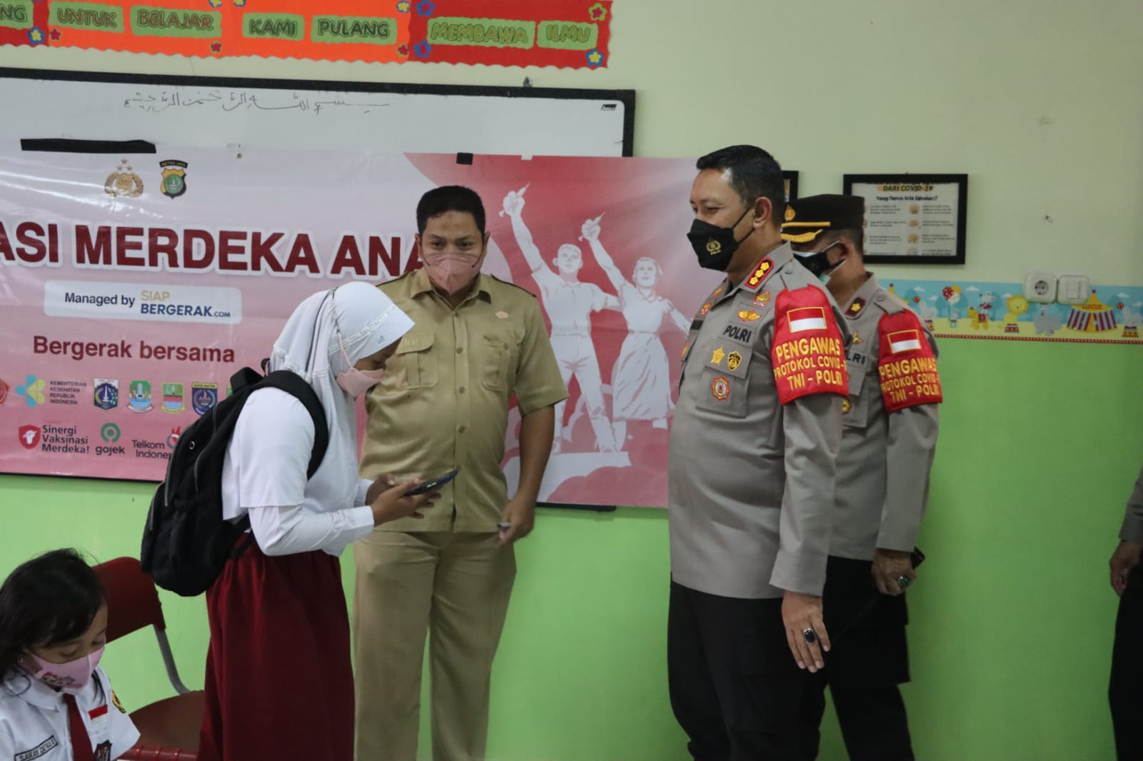 NASIONALXPOS.CO.ID, KOTA TANGERANG – lri tengah menggencarkan vaksinasi Covid19 untuk anak. Polres Metro Tangerang Kota dalam dua Minggu terakhir menggenjot vaksinasi anak untuk memutus mata rantai penyebaran virus.
