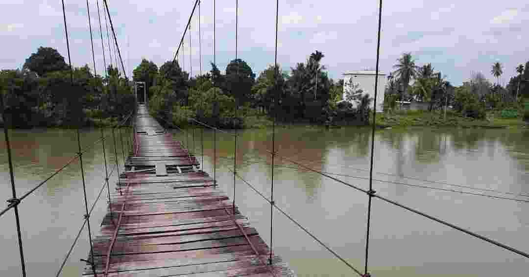 Setelah memantau Vaksinasi Secara Massal, Kapolres bersama Camat dan Datuk Rio meninjau jembatan penghubung antara Dusun Pelayang dan dusun Seberang Jaya yang kondisinya sangat memprihatinkan. (is/gpr)