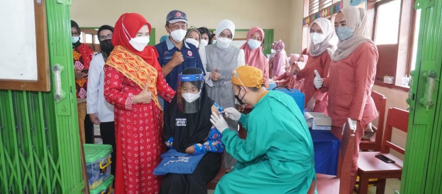 Kali ini, selaku Duta Vaksin, Bunda Winarni meninjau langsung pelaksanaan vaksinasi bagi pelajar SMP yang dipusatkan di SMP Negeri 1 Tanjung Bintang, Rabu (29/9/2021).