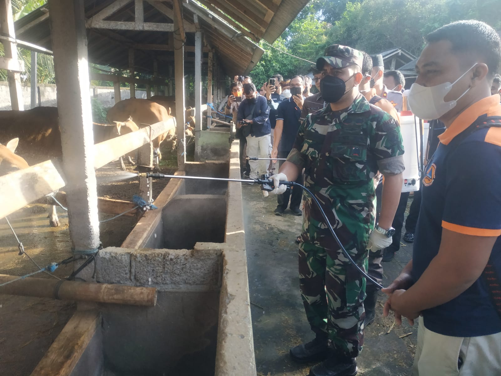 Sekretaris Daerah (Sekda) Kabupaten Gianyar, I Made Gede Wisnu Wijaya didampingi Dandim 1616/Gianyar, Letkol Inf. Hendra Cipta, S.Sos., saat ditemui di Simantri Desa Temesi mengatakan bahwa vaksinasi ini dilakukan untuk mencegah penyebarluasan wabah PMK.
