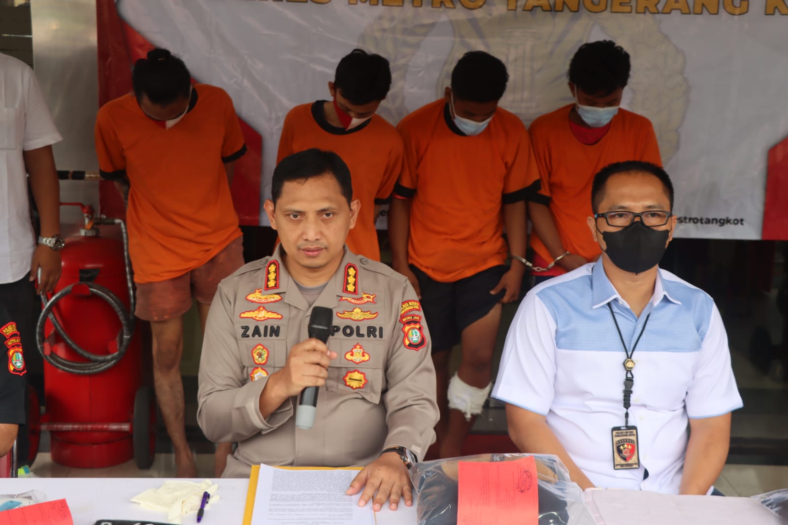 “Keempat pelaku ini adalah kelompok yang berbeda. Untuk A dan IM ditangkap di wilayah Ciputat Kota Tangerang Selatan. Sedangkan JN dan FS ditangkap di Kalideres Jakarta Barat,” kata Kapolres Metro Tangerang Kota, Kombes Pol Zain Dwi Nugroho saat konferensi pers. Sabtu, (11/6/2022) siang.