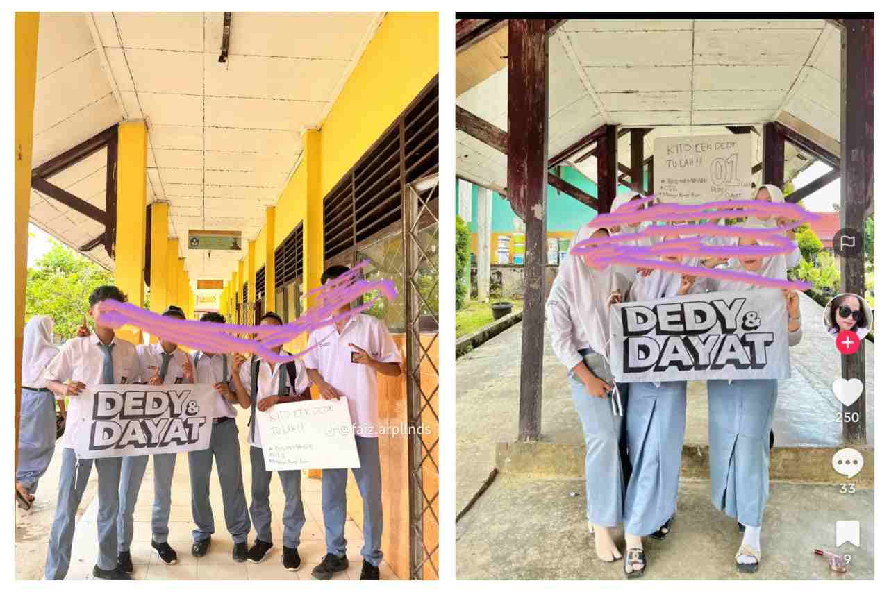 Foto-foto tersebut disebarkan di akun platform digital media sosial Tiktok dengan hastag mengajak memilih pasangan Dedy – Dayat.