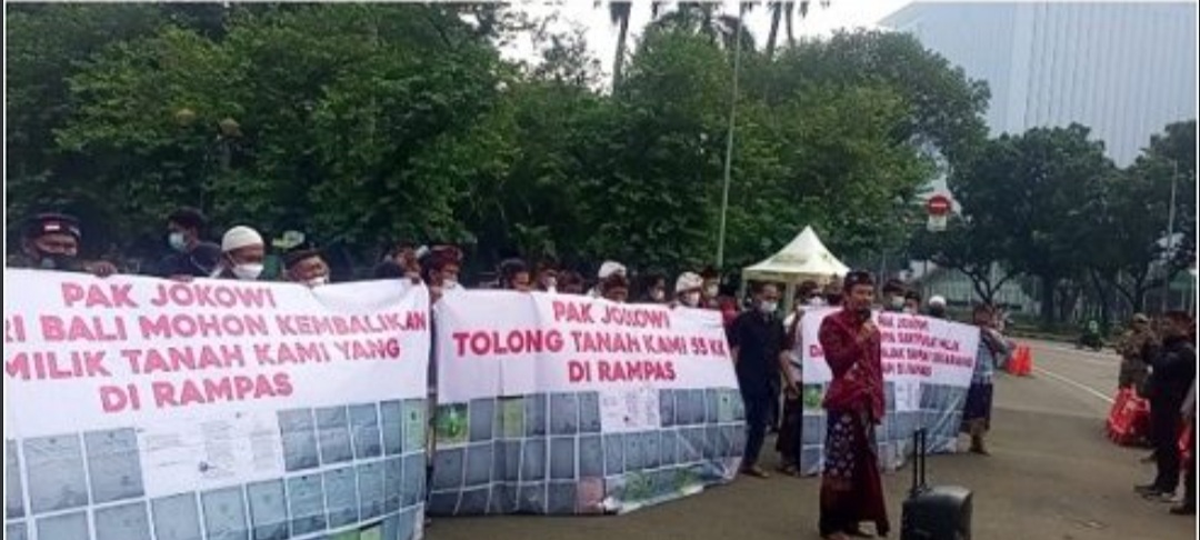 NASIONALXPOS.CO.ID, JAKARTA -Perwakilan 45 warga Batu Ampar menggelar aksi demo damai bersama Nyoman Tirtawan, membentangkan spanduk atas dugaan kasus lahan seluas 45 hektare di dusun Batu Ampar, Desa Pejarakan, Kecamatan Gerokgak, Kabupaten Buleleng, Bali, di depan Istana Negara, Jakarta. Senin, (19/12/2022).