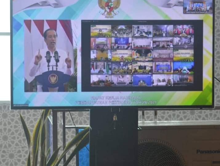NASIONALXPOS.CO.ID, MUSI RAWAS – Wakil Bupati Musi Rawas Hj. Suwarti Burlian, ikut serta Rapat Kerja Nasional (Rakernas) Pembangunan Pertanian Tahun 2021 Oleh Presiden Republik Indonesia Joko Widodo (Jokowi) melalui Video Conference (Vidcon) di Replika Rumah Adat Kantor Bupati Musi Rawas, Senin (11/01/2021).