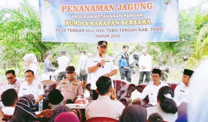 NASIONALXPOS.CO.ID, TEBO – Wakil Bupati Tebo, Nazar Efendi, SE, M.Si, menghadiri kegiatan penanaman jagung dalam rangka Program Ketahanan Pangan Tahun Anggaran 2025 yang digagas oleh BUMDes Harapan Bersama.