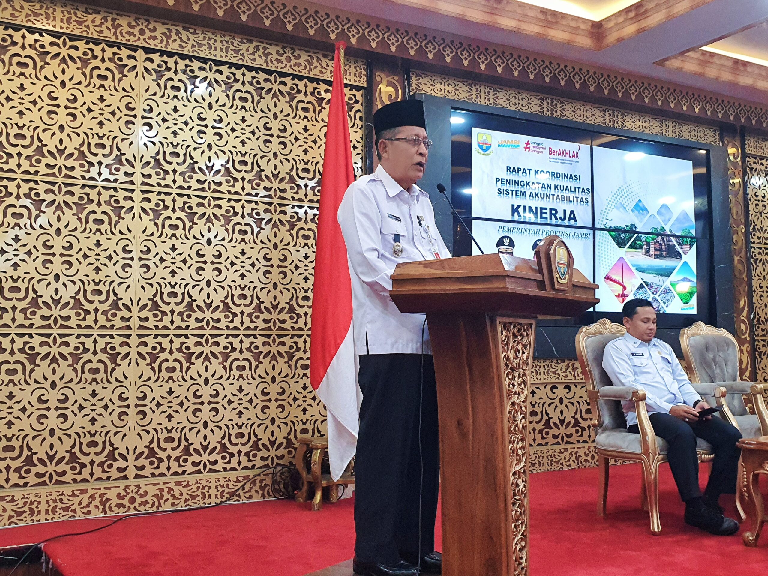 NASIONALXPOS.CO.ID, JAMBI – Wakil Gubernur Jambi Drs. H. Abdullah Sani, M.Pd.I meminta Kepala OPD Lingkup Pemerintah Provinsi Jambi berkomitmen dan bertanggung jawab untuk meningkatkan kualitas penilaian Kualitas Sistem Akuntabilitas Kinerja Instansi Pemerintah (SAKIP) Provinsi Jambi Tahun 2025. Pernyataan ini disampaikan Wagub pada paparannya di depan Kepala OPD pada acara Rapat Koordinasi Peningkatan Kualitas Sistem Akuntabilitas Kinerja Instansi Pemerintah (SAKIP) Provinsi Jambi Tahun 2025, bertempat di Ruang Pola Kantor Gubernur Jambi, Rabu (16/04/2025).