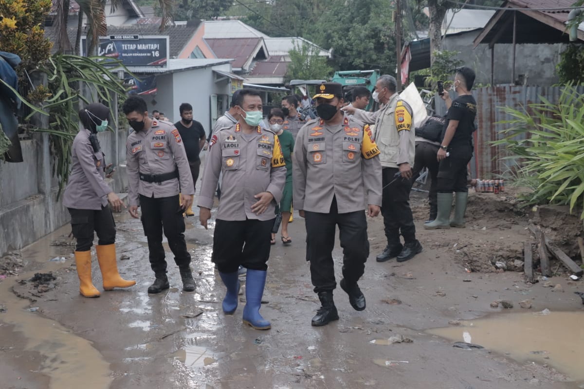 Sesaat usai tiba di lokasi, Wakapolda mengunjungi langsung beberapa rumah warga yang terdampak banjir dan berdialog singkat dengan pemilik rumah, seputar kronologi maupun dampak yang dialami.