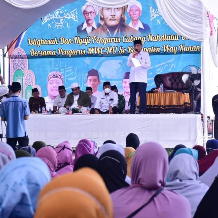 NASIONALXPOS.CO.ID, WAY KANAN – Wakil Bupati Way Kanan, Drs. H. Ali Rahman, M.T Menghadiri Acara Istiqosah dan Ngaji Bersama Pengurus Cabang (PCNU) dan Majelis Wakil Cabang (MWCNU) Nahdlatul Ulama Kabupaten Way Kanan, di Yayasan Pendidikan SMP Islam Mifthul Ikhlas Kampung Negeri Baru, Kecamatan Umpu Semenguk. (30/3/2022).