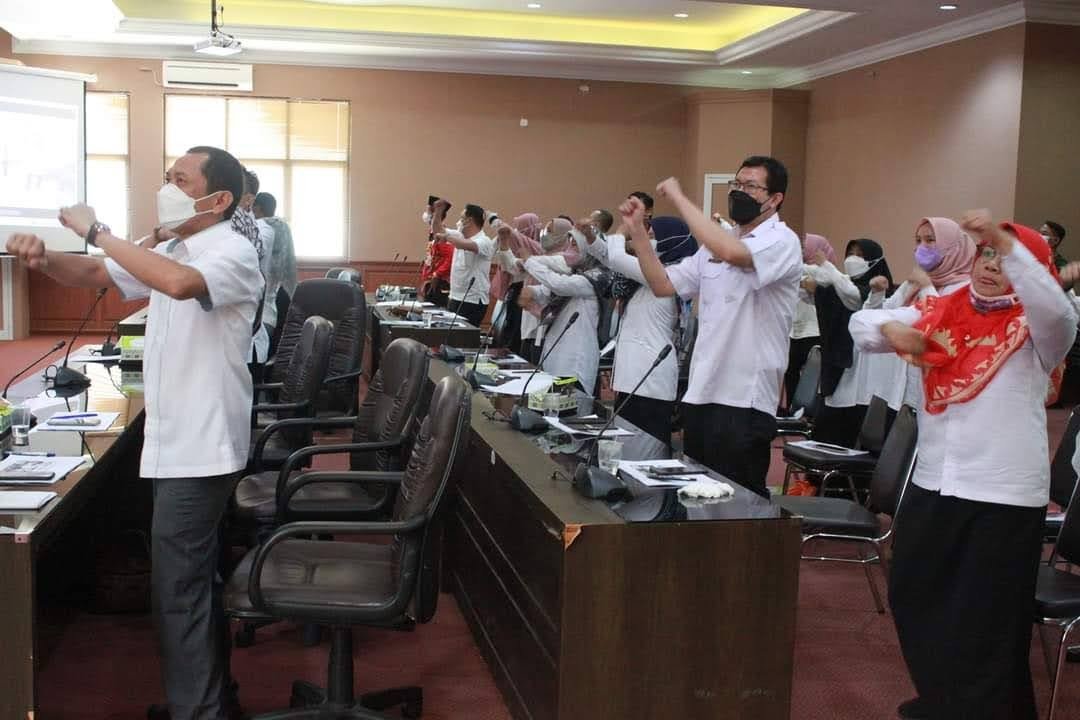 Sebelum dimulainya materi, semua peserta kegiatan melakukan senam sehat terlebih dahulu, “ini dianjurkan dan sangat bermanfaat untuk kita semua yang melakukan kegiatan duduk lebih dari 2 jam dalam sehari” tambah narasumber yang berasal dari Seksi Kesehatan Lingkungan, Kerja dan Olahraga Dinas Kesehatan Kabupaten Lampung Selatan. (Nasuki /Humas)