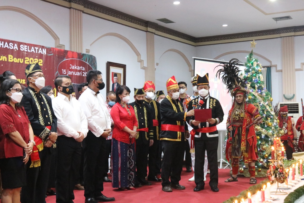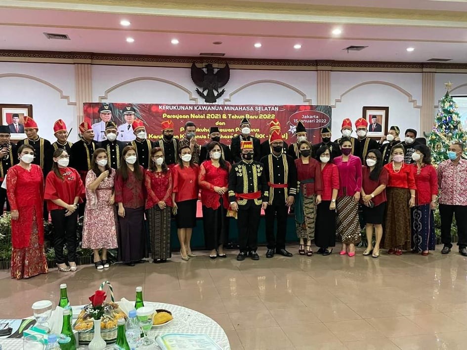 NASIONAL XPOS.CO.ID JAKARTA – Dewan Pengurus Kerukunan Kawanua Minahasa Selatan (kk – minsel), menggelar perayaan Natal 2021 dan Tahun Baru 2022. Dengan mengusung tema ”cinta kasih kristus yang menggerakan persaudaraan” dan hadir mewakili Bupati Minsel Pdt.Petra Yani Rembang selaku Wakil Bupati didampingi Sekretaris Tp-Pkk Minahasa Selatan Ibu Juli Rembang Wati, pada perayaan natal tersebut yang dirangkaikan dengan pengukuhan Dewan Pengurus (KK – Minsel) turut hadir dalam kegiatan Mewakili Gubernur, Sekretaris DPRD Provinsi Sulawesi Utara Ibu Gladi Kawatu hadir secara (vidcon), Letjen TNI (PURN) E.E. Mangindaan,Sip, yang merupakan Dewan Pembina dan Penasehat Kerukunan kawanua Minahasa Selatan, Laksamana Madya (PURN) TNI Dr. Desi Albert Mamahit,M.Sc. Di gedung persada halim perdana kusuma,jakarta. Sabtu (15/1/2022).