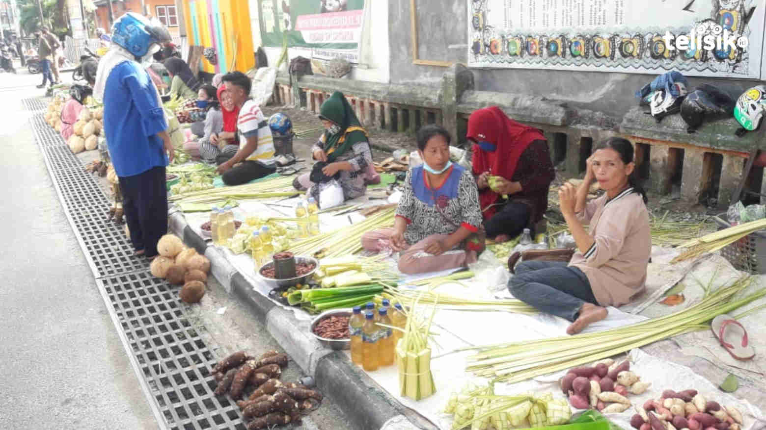 Dimana, kata dia, sejak pagi ia sudah mulai berjualan di area pasar tersebut. Adapun daun kelapa yang ia jual dibeli oleh masyarakat sebagai bahan pembuatan ketupat untuk menjadi menu makanan saat lebaran.