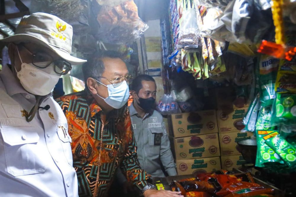 NASIONALXPOS.CO.ID, KOTA TANGSEL – Wali Kota Tangerang Selatan, Benyamin Davnie mendampingi Wakil Menteri Pertanian (Wamentan) Harvick Hasnul Qolbi, melakukan inspeksi mendadak (sidak) di Pasar Serpong, Tangerang Selatan, Rabu (2/3/2022).