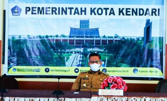 Wali Kota Kendari H. Sulkarnain K, SE., ME bersama Wakil Wali Kota Kendari dr. Hj. Siska Karina Imran, S.KM menghadiri Rapat Koordinasi Penanganan Pandemi Covid-19 di Indonesia bersama Presiden RI Joko Widodo beserta Wakil Presiden, para menteri, dan seluruh Kepala Daerah Se-Indonesia yang dilakukan secara Virtua melalui Aplikasi Zoom Meeting.