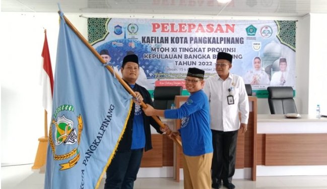 NASIONALXPOS.CO.ID, PANGKALPINANG – Walikota Pangkalpinang diwakili oleh asisten pemerintahan dan kesra Resmi melepaskan Kafilah Musabaqah Tilawatil Qur’an dan Hadist Nabi (MTQH) XI Kota Pangkalpinang untuk berkompetisi tingkat Provinsi Kepulauan Bangka Belitung di Toboali Kabupaten Bangka Selatan. di Gedung PLHUT Kantor Kementerian Agama Kota Pangkalpinang, Selasa (15/11/2022).