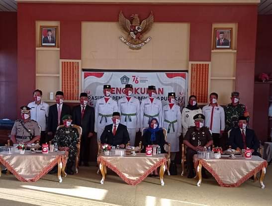 NASIONALXPOS.CO.ID, KENDARI/SULTRA -Walikota Kendari Sulkarnain Kadir mengukuhkan pasukan pengibar bendera (Paskibraka) Kota Kendari yang akan bertugas mengibarkan bendera pada perayaan HUT RI ke 76.