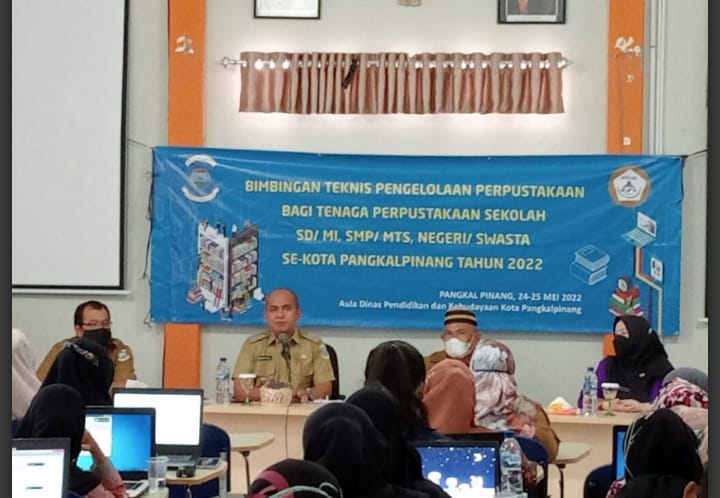 NASIONALXPOS.CO.ID, PANGKALPINANG – Walikota Pangkalpinang, Maulan Aklil (Molen) menghadiri sekaligus membuka acara bimbingan teknis klasifikasi dan katalogisasi buku perpustakaan bagi tenaga pengelola perpustakaan sekolah se Kota Pangkalpinang, bertempat di aula ruang Dinas Pendidikan dan Kebudayaan Kota Pangkalpinang, Selasa (24/05/2022).