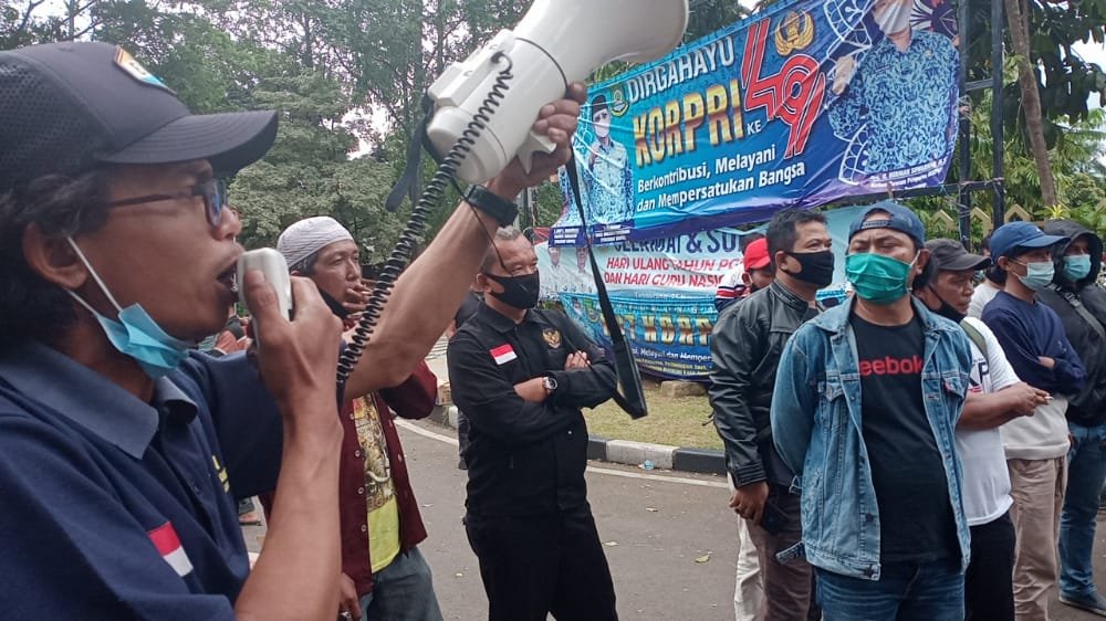 Demikian isi orasi Sekretaris Patron Kota Tangerang, Saipul Basri saat mengelar aksi di Puspemkot Tangerang, Senin (30/11/2020).