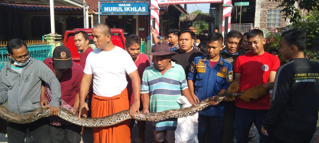 Tambahnya, “dan akhirnya ular sanca yang berukuran panjang kurang lebih 5 meter itu telah tertangkap dibantu oleh Dinas Damkar dan Satpol PP, Karawaci” Ujar Rusmanto